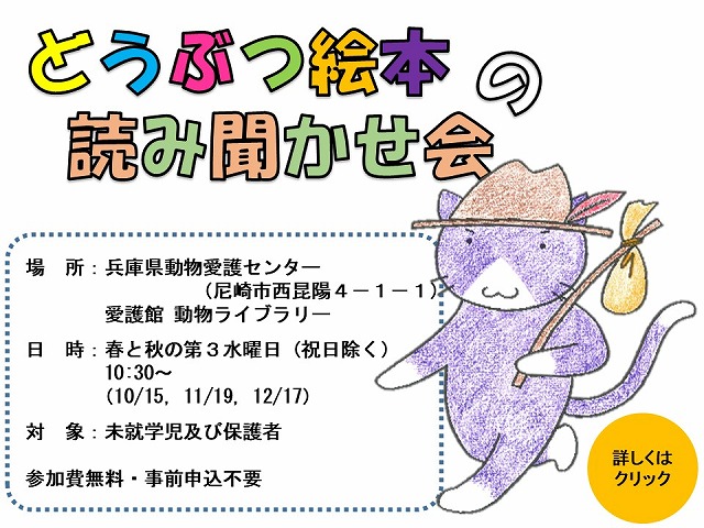 どうぶつ絵本の読み聞かせ(11・12月第3水曜日)センター愛護館、申込不要